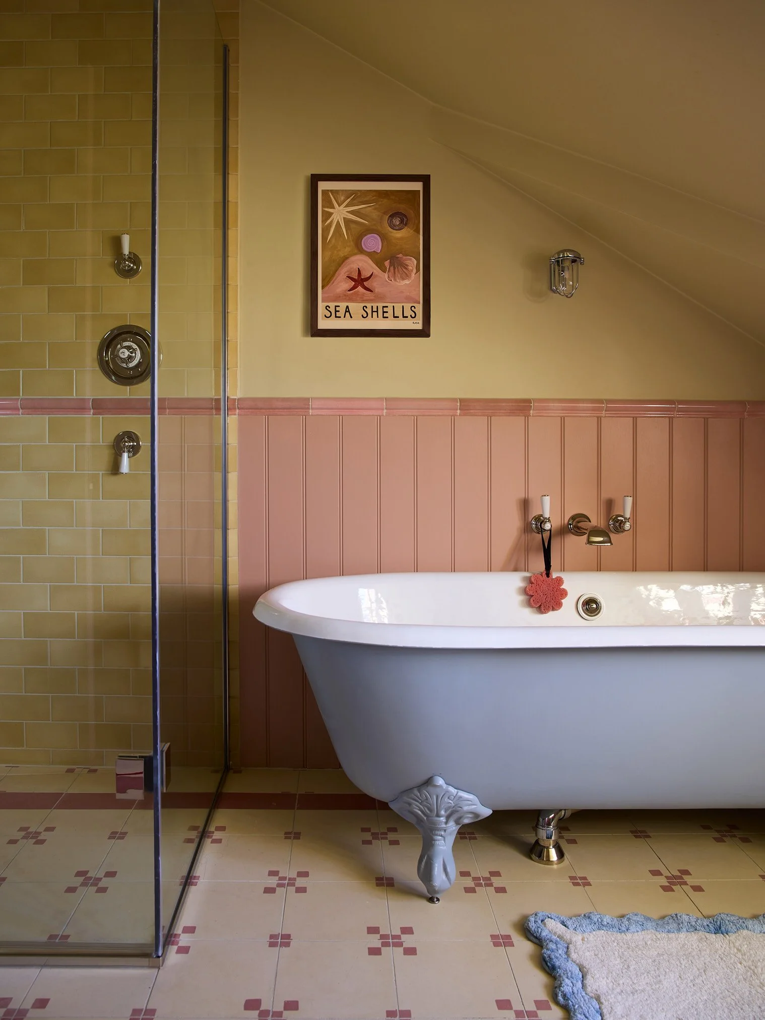 On the first floor, we reconfigured the master bedroom to create a master suite, with dressing room and statement master ensuite, again with a feature lantern roof light. We extended the first floor to accommodate this ensuite and two balconies, one connected to the ensuite and one to the master bedroom, allow for stunning views of the garden and the common beyond. We specified a sedum roof to the flat roof of the kitchen extension, so that the balcony from the master bedroom looks out onto greenery on the roof and then the trees beyond.