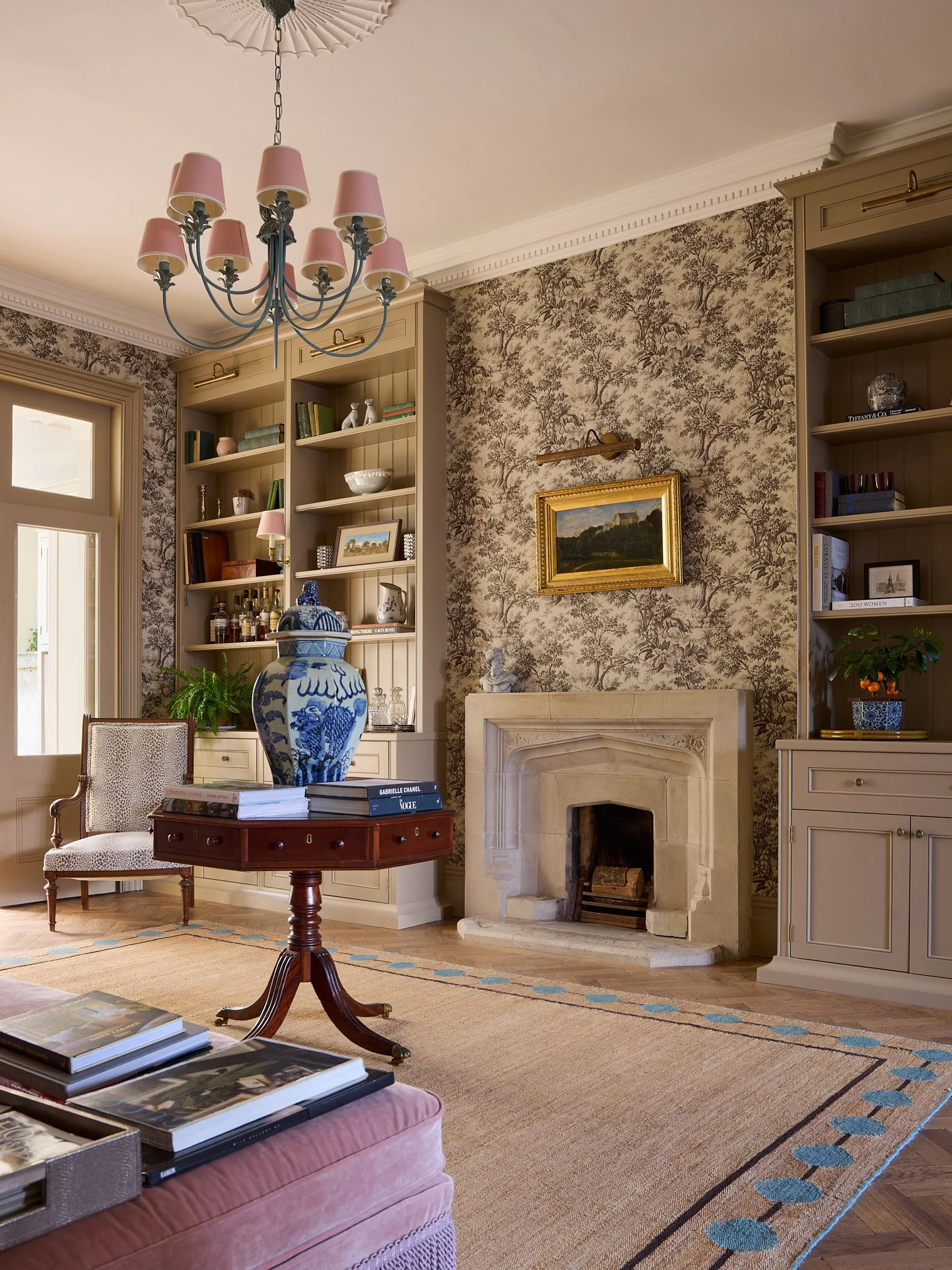 We reconfigured the ground floor in order to create a multi-use space that is used daily as a library and extension of the living space between the kitchen and more formal drawing room and on special occasions is to become a large dining space for a large number of family and friends who gather at the house. A snug is also connected to the dining room, offering a cosy space to sit and enjoy the open fireplace.